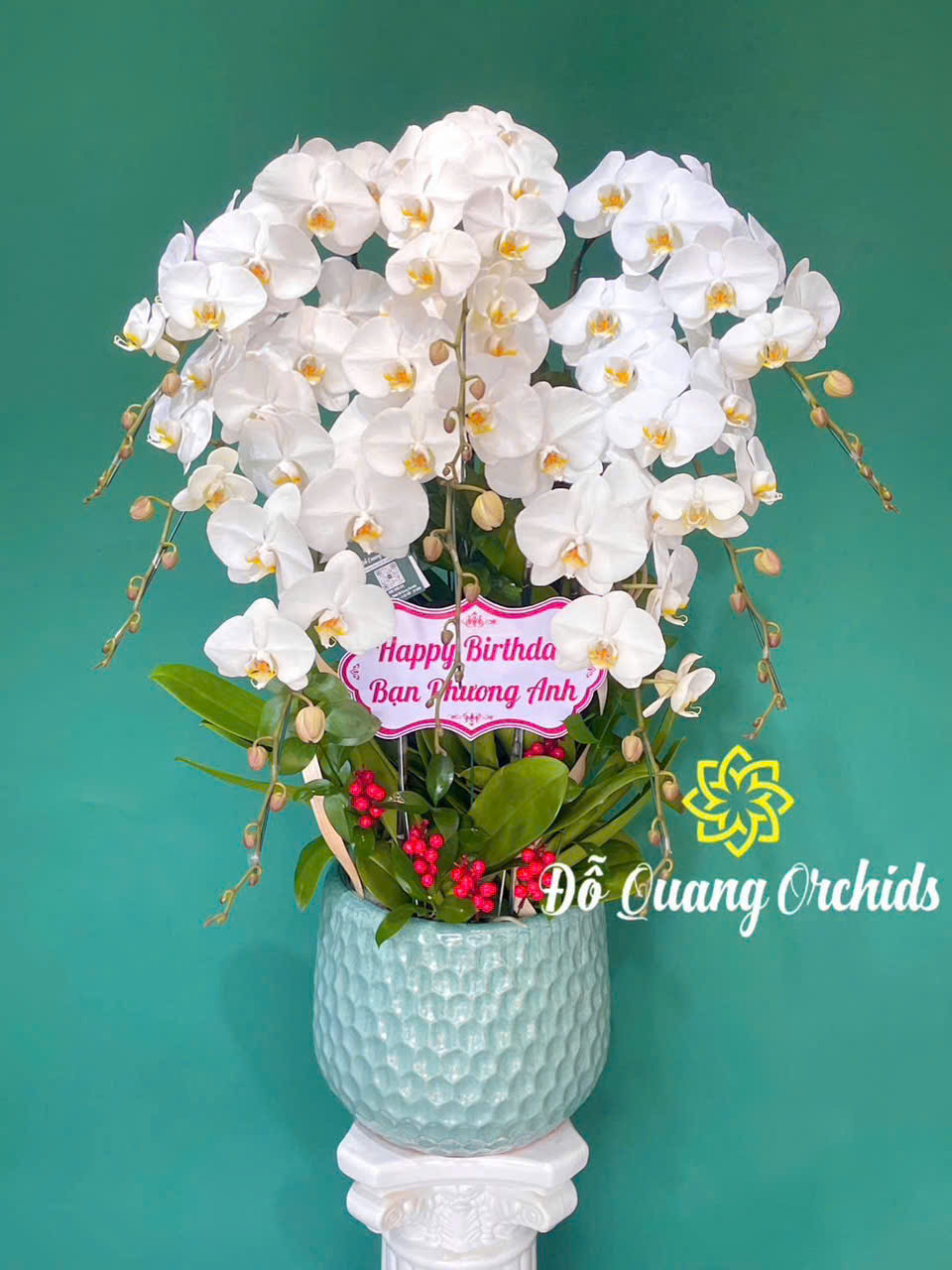 Mang vẻ đẹp thanh tao và sang trọng bậc nhất, chậu hoa lan hồ điệp là biểu tượng của sự vương giả, sung túc và may mắn. Từng cành lan được tuyển chọn kỹ lưỡng với những bông hoa to, cánh vươn dài đầy sức sống, màu sắc rực rỡ và độ bền lâu tàn lên đến hàng tháng trời. Đây không chỉ là điểm nhấn hoàn hảo bừng sáng không gian sống, không gian làm việc mà còn là lời chúc bình an, tài lộc trọn vẹn nhất.